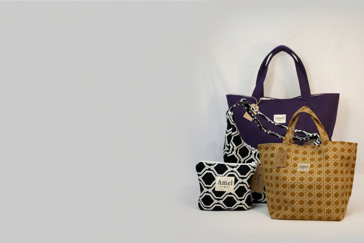 Chaque modèle est imaginé à partir de matières chinées et revalorisées. Rien n’est laissé au hasard : chaque choix est pensé, utile et durable.
